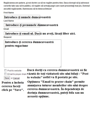 Primul Pas : În rubrica "Cereri pentru rugăciune" face-ţi click pe "Adreseaza cererea pentru rugăciune!"